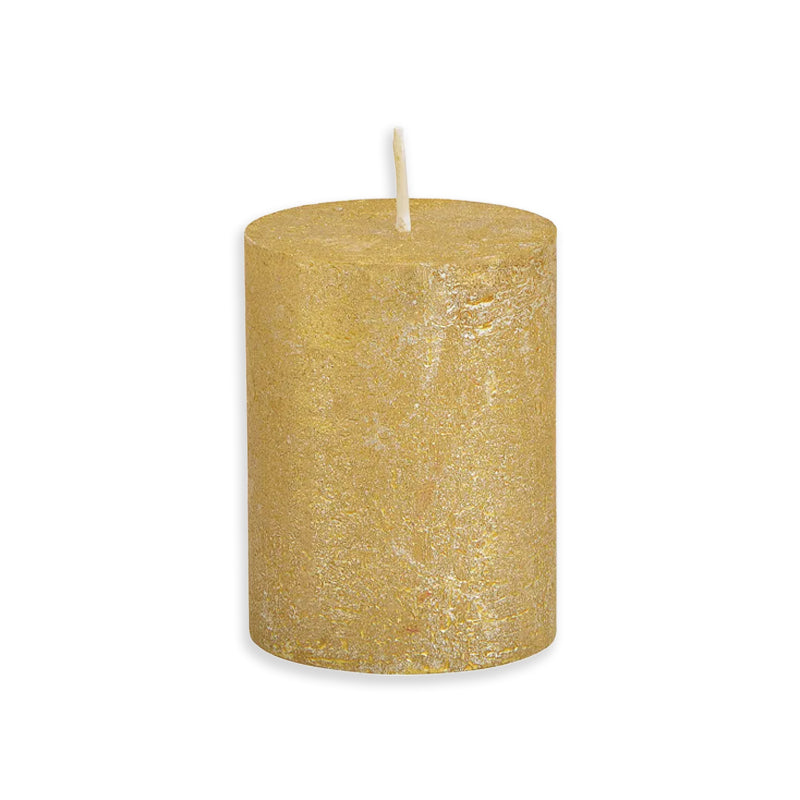 Deze goudkleurige stompkaars heeft een eenvoudige cilindervorm en een zachte, matte afwerking. Met een diameter van 6,8 cm en een hoogte van 9 cm is het een compact formaat dat makkelijk te combineren is. Door de rustige kleur en afwerking geeft de kaars een warme sfeer zonder nadrukkelijk aanwezig te zijn.